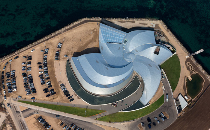 Аквариум «Голубая планета» Эффектное здание аквариума «Голубая планета» - творение группы архитекторов “3NX” компании из Копенгагена. Самый большой и впечатляющий аквариум в мире имеет динамичную форму закручивающегося серебряного глаза, который попал в своеобразную воронку. И здание, и то место, где оно находится, органично дополняют друг друга.