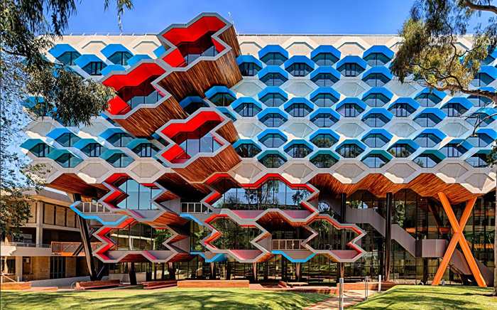 Институт молекулярных исследований Изумительное и привлекательное шестиугольное шестиэтажное здание института молекулярных исследований “The La Trobe Institute for Molecular Science”, который является структурной единицей ведущего медицинского университета Мельбурна “La Trobe”, Австралия, спроектировано и построено архитектурной компанией “Lyons Architects”. Окна расположены на центральном и боковых фасадах здания. 8. Штаб-квартира нефтяной компании «Статойл», Норвегия