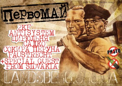 Ввечері 1 травня відбувся концерт приурочений до свята боротьби робочого класу. На заході виступили гурти: 2KF (Україна), Садко (Росія), Сокира Перуна (Україна), Antisystem (Росія), J.M. (Словаччина), Faustrecht (Німеччина). Всі гурти виступили на вищому рівні. А особливо приємно було бачити в Україні німецький націонал-революційний гурт Faustrecht з його хітами як "Klassenkampf", "Die Macht des Kapitals", "Der Aufstand" тощо. Інтерв’ю з учасниками гурту можна прочитати тут: http://ntz.org.ua/?p=1069 На концерті не було ні одного п’яного і загалом панував дух єдності і товариства, а ті хто не відвідав його можуть тільки пошкодувати. Біля місця, де проходив концерт було дуже багато "Беркуту" в автобусах і автозаки, але зірвати концерт їм не вдалось.