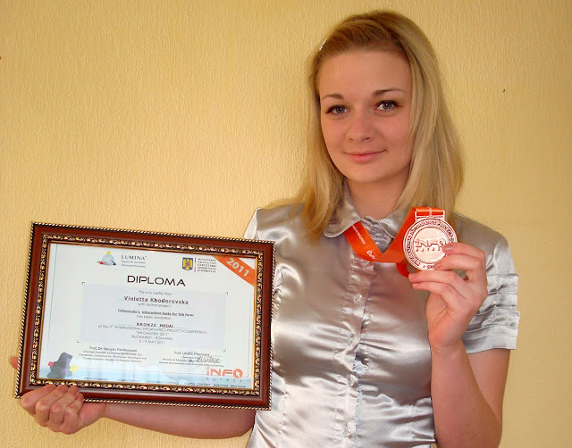 Ходоровська Віолетта Валеріївна, учениця 10 класу Кам'янського еколого-економічного ліцею Кам'янської районної ради Черкаської області. Тема проекту: «Використання технологій HTML, CSS, JavaScript для створення електронного навчального посібника «Інтерактивні тести з інформатики для 9 класу».