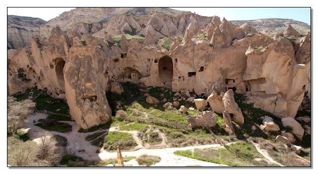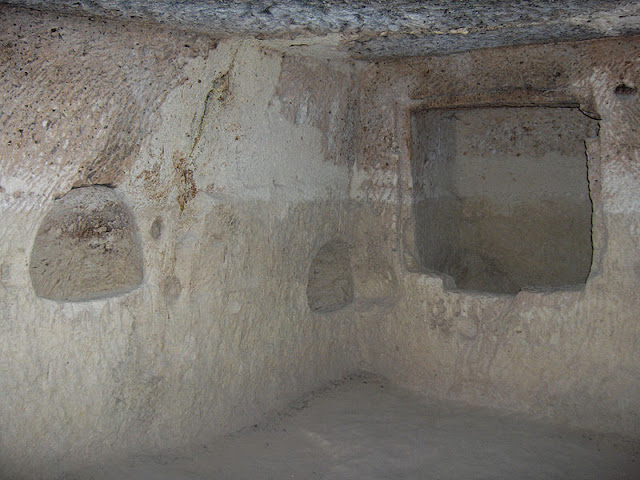 Склоны гор, подступающих к городским окраинам, испещрены десятками зияющих провалов — полуразрушенными жилищами невшехирцев прошлого. Это один из