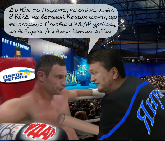 Чого не можна сказати за псевдоопозиційну, попсову партію, УДАР. Шкода лоба тих громадян, які наступили на ці, розцяцьковані боксерськими перчатками, граблі.