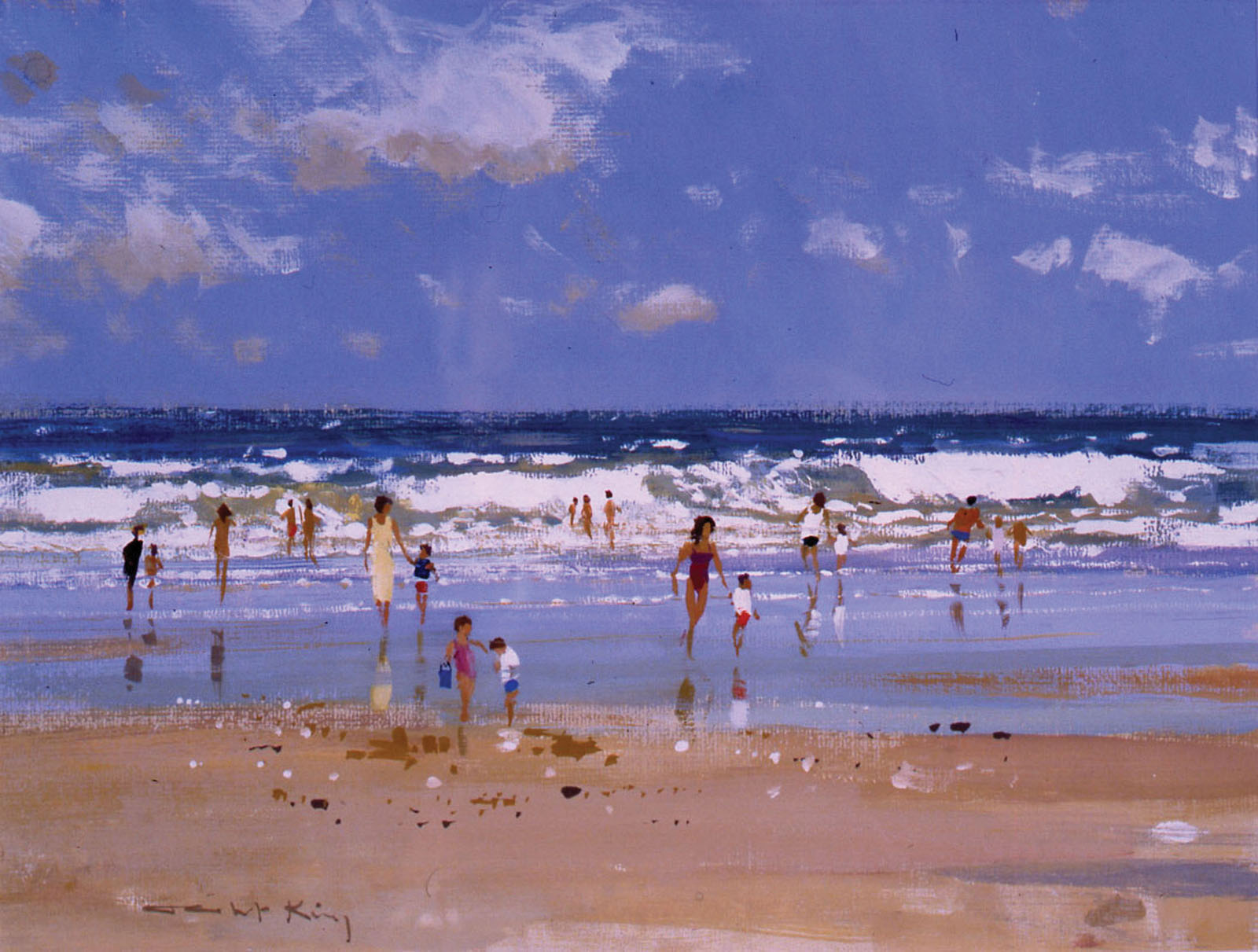 Вглядитесь в его работы, за его кистью с легкостью угадывается нежность и сила мужского взгляда на женщин, море и весь окружающий мир. Именно так и должен смотреть из окон своего дома офицер береговой службы, член Королевского Института Живописцев – Акварелистов (с 1976г.) и Королевского Обществе Морских Художников(с 1985г). Его работами восхищаются и они высоко ценятся коллекционерами . Тёплые краски , много света и близость к зрителю -- всем этим отличаются работы художника. Картины Роберта Кинга можно найти в главных коллекциях по всему миру.(С)
