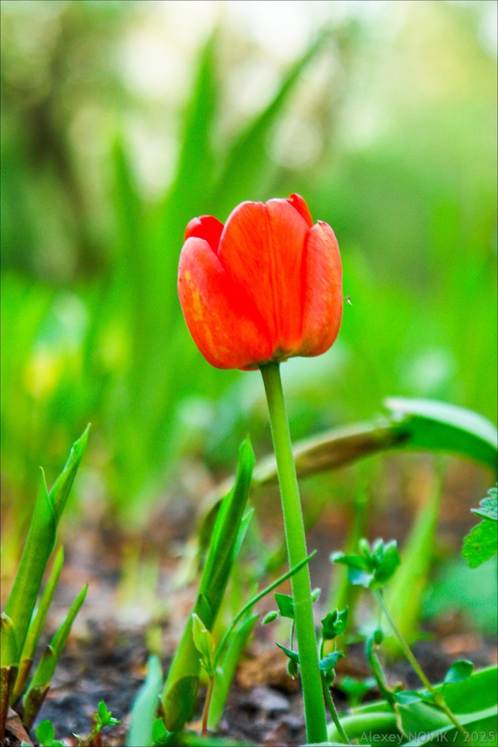 И одинокий тюльпан, неизвестно как оказавшийся в лесу