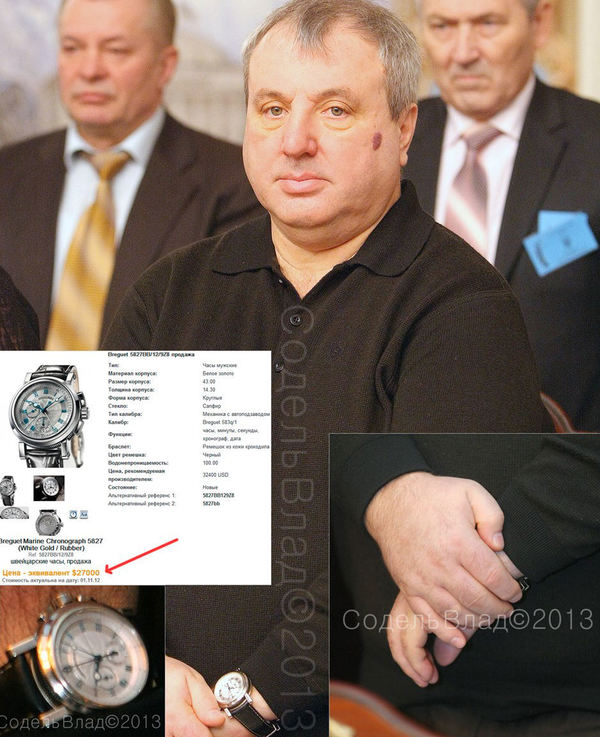 4. У лютому 2013 року фотокореспондент газети «Комерсант» Влад Содель опублікував фото Овчаренко зі з'їзду суддів. На зап'ясті Овчаренко був годинник Breguet Marine Chronograph. Його середня ціна - близько $ 27 000.