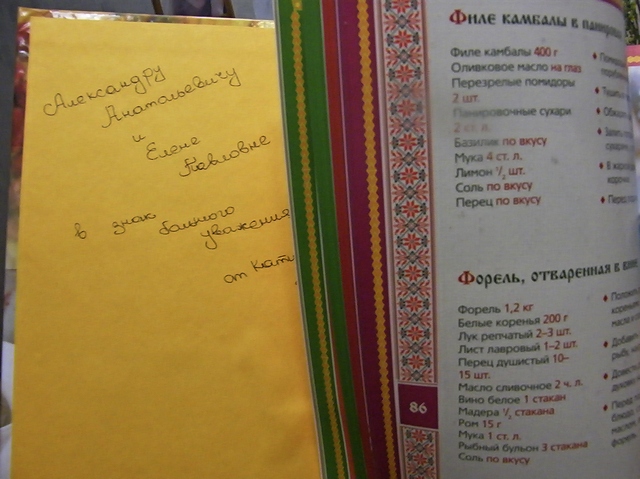 На прощание Катюша подарила нам с женой очень дорогую книгу с надписью. Зачем тратилась? Но нам будет всегда очень приятно доставать ее и вспоминать Катю. Спасибо. Даже слезы навернулись на глаза и, не придумав ничего лучшего, я подарил Катюше первое, что попалось на глаза - какую-то свою дурацкую картину в рамочке.