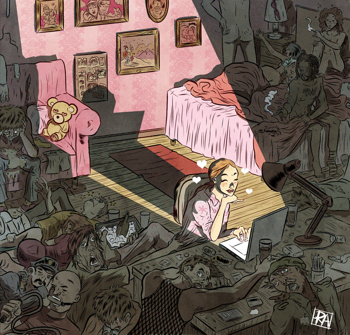 Ну что еще? Рассказать есть много чего, но слишком устал. Вот еще такая картиночка есть про обстановку у некоторых блоггеров дома. Это испано-американский художник-иллюстратор Рафа Альварес.