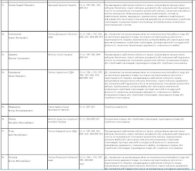 Також до "чорного списку" потрапили голова парламентської фракції Партії Регіонів Олександр Єфремов (теж за спробу державного перевороту) та кілька нардепів-регіоналів.