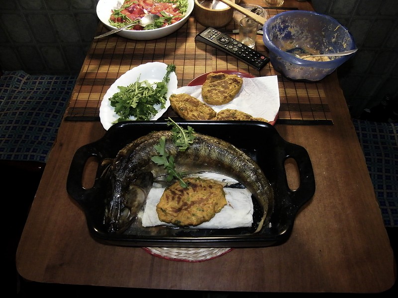 И из позитивного. В наших краях обнаружилась одна из самых знаменитых рыб - Лаврак (Dicentrarchus labrax). Особо следует отметить, что мелкая чешуя чистится очень легко, однако это компенсируется пиздюлями, полученными от жены за обляпанную кухню.