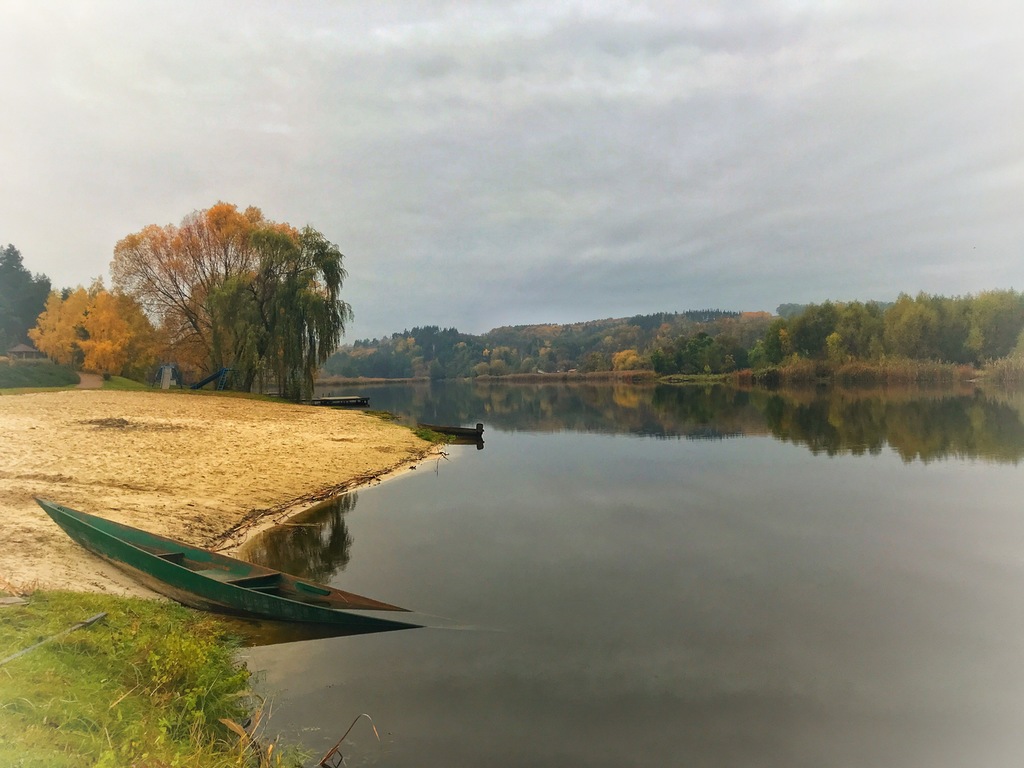 Берег пуст, старая лодка уткнулась носом в песок.