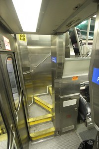 Весь день работает кондиционер, его не выключают даже во время простоя между рейсами. Двери в тамбур автоматические и открываются при нажатии на кнопку. Если руки заняты, есть кнопка для ноги.