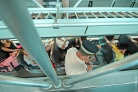 На второй этаж кондуктор не поднимается. Пассажиры протягивают билеты сверху.