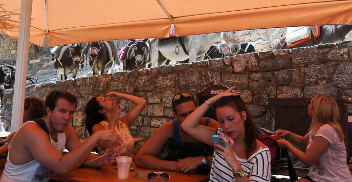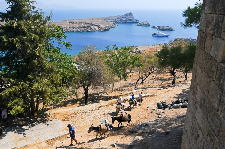 23. Линдосское такси. Если лениво подниматься пешком в древний акрополь, то можно воспользоваться услугами такого транспорта.