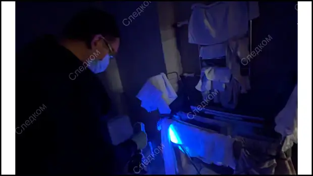 В квартире убитых Тарховых проходят следственные действия. В хозяйской ванной ещё висит выстиранное бельё на сушилке