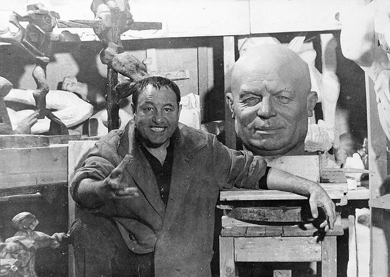 Подпись к фото, взятому из архивов КГБ под грифом ДСП–б. "Неизвестный скульптор на деньги французов фантазирует, как бы мог выглядеть Фантомас. Внезапно, ему поступает заказ на могилку одного вождя". (Эрнст Неизвестный)