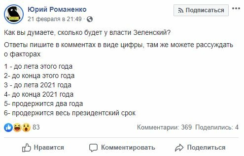 Точно не знаю, но уверен, что до конца президентского срока клоун не досидит! Выкинут эту тварь гораздо раньше! Но вот когда...?!Теж такої думки))) Рейтинг стримко впав, здається, лише 6% вже підтримують ото опудало)
