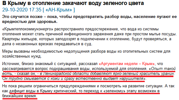 В Крыму в отопление закачают воду зеленого цвета
