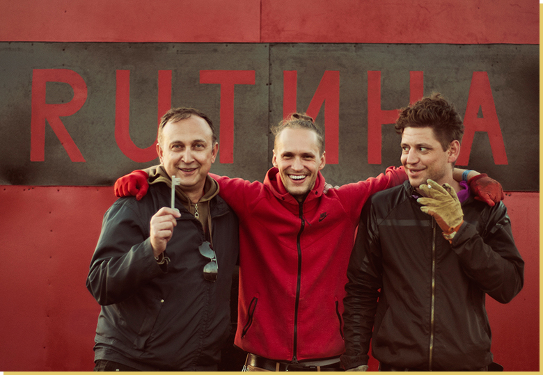 GAZ Проект «RuТИНА» художники планировали реализовать еще год назад, но считали его недостаточно уместным. В этом году на фоне «ленинопада» массового избавления от гнетущих монументов, что является признаком «выздоровления страны» тема оказалась очень актуальной. «Она появляется в воздухе снова и снова. Вопрос отменить / сохранить эти «святые признаки тоталитаризма» лихорадит общество с закономерной периодичностью. А мы решили покончить с этим раз и навсегда, объясняют авторы Василий Грубляк и Алексей Золотарёв. Было много разных вариантов уничтожения артефакта, но все же мы решили символически очистить его огнем. Мы даже не стали тушить остатки водой, а по фэншуй засыпали песком, чтобы стихия огня была довольна (смеются). Надеемся, что этим актом сожжения прекратим волнения в космосе. Работать с советскими штампами сегодня интересно многим украинским художникам, тем более теперь, когда они приобрели совсем другой привкус. Ведь сегодня поставлены под сомнение не только законность и оправданность советских идолов, пережитков режима, а вообще существование и наполнение русской культуры. Уже подвергаются переосмыслению русская литература, история, герои. Нравится это или нет, но данная тенденция необратима».