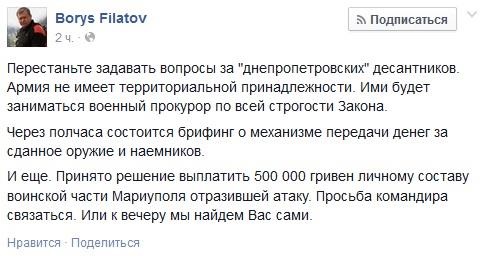 «Ради борьбы с сепаратизмом и терроризмом в Восточных регионах Украины и установления стабильности и спокойствия в государстве, Тимошенко решила снять свою кандидатуру с президентской гонки и создала сегодня и возглавила Движение сопротивления», — написал Михаил Рябец на своей странице в фейсбуке.