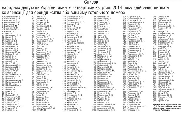 300 депутатов Рады в октябре-декабре 2014 года получили компенсацию из госбюджета для аренды жилья или найма гостиничного номера, сообщает парламентская газета Голос Украины.