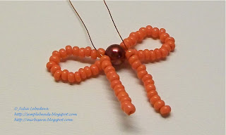 конец проволоки через оставшиеся две бисеринки в обратном направлении.