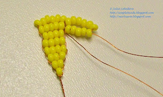 Нижний ярус - снова уменьшаем количество бисеринок, набираем всего 2 жёлтые бисеринки.