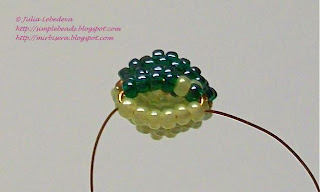 Верхний ярус - набираем на один из концов проволоки 3 зелёные бисеринки,