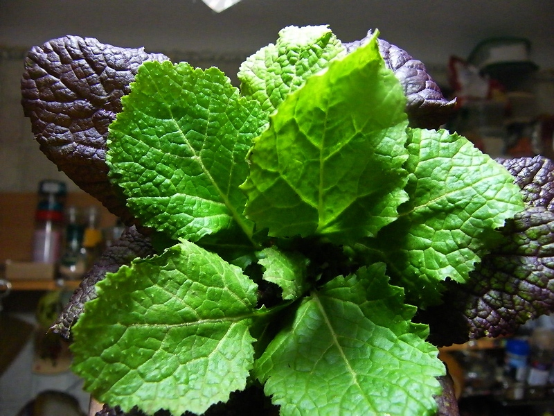 И любовно так все приготовлено. Вымыто, связано-первязано. Листья горчицы - вообще как букет. Она их только для нас выращивает. Ну и для души тоже.