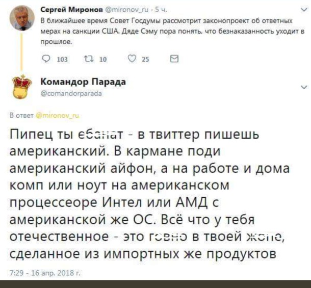 тыкайте в Россию пальцем, как в нерадивую девку: и нос в борще, и губа в